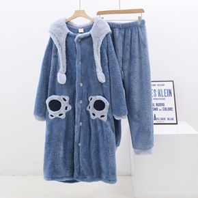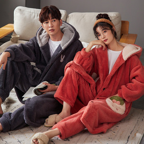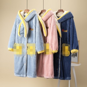 新款可爱玉桂狗卡通女士睡袍冬季加绒保暖家居服连帽睡...