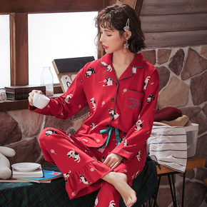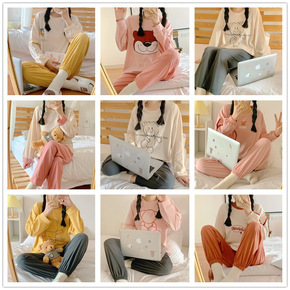2022春季新款长袖女睡衣精梳棉圆领卡通套装休闲女...