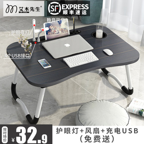 电脑桌床上可折叠懒人桌子做桌寝室用学生书桌带灯充电...