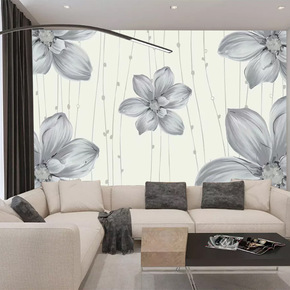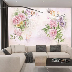 简约手绘花卉田园墙纸壁画影视电视墙壁纸客厅卧室背景...
