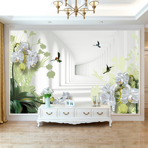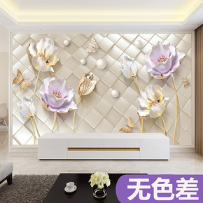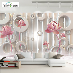 3d墙纸客厅电视背景墙壁纸卧室沙发壁画8d立体荷花...
