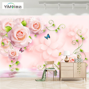 壁画墙布3D粉红玫瑰梦幻时尚简约花朵卧室客厅电视背...