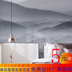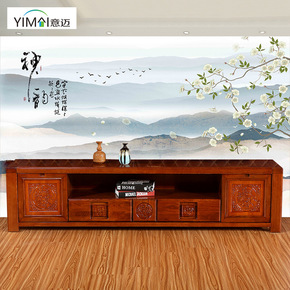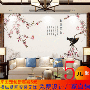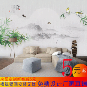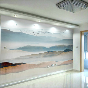 壁画背景墙壁纸新中式水墨山水花鸟客厅卧室书房3d墙...