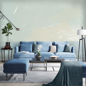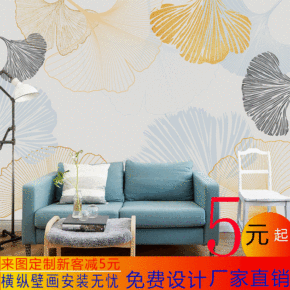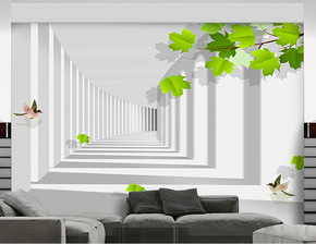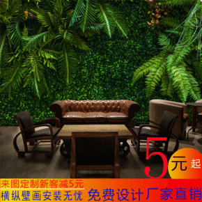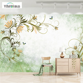 壁画现代简约个性壁纸绿色花藤蝴蝶沙发客厅卧室电视背...