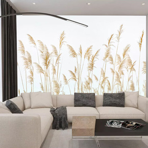 简约风景电视背景墙壁画清新芦苇丛墙纸艺术壁纸客厅卧...