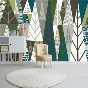 3D立体壁画北欧手绘森林小树木餐厅背景墙纸卧室沙发...