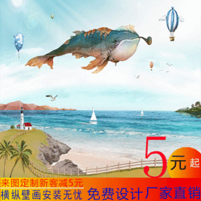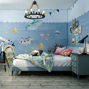 男女孩温馨卧室壁纸背儿童房景墙布海底世界墙纸壁画幼...