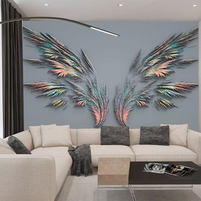 3d立体羽毛翅膀壁画无缝咖啡厅酒吧直播装饰墙布卧室...