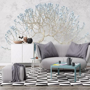 无缝3d简约欧式淡雅抽象树木客厅电视背景墙沙发卧室...