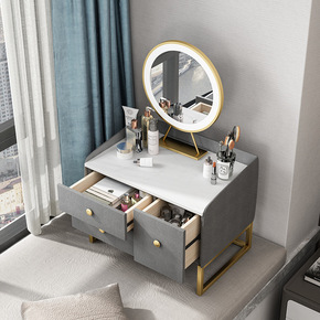 小户型60cm岩板轻奢风梳妆台收纳柜一体卧室现代简...