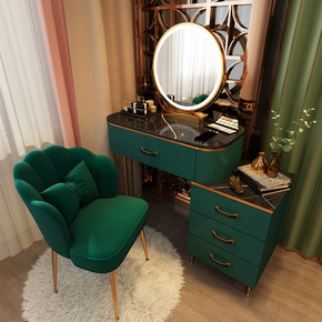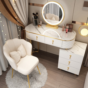 轻奢岩板梳妆台小型实木卧室现代简约2021年新款极...