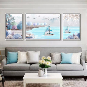 客厅装饰画现代简约沙发背景墙海景挂画酒店房间创意床...