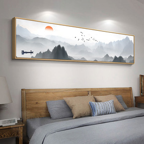 现代中式床头挂画 禅意水墨意境山水花鸟国画酒店床头...