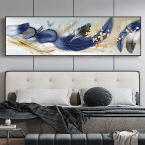 床头画2021年新款主卧晶瓷画轻奢现代羽毛酒店宾馆...