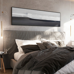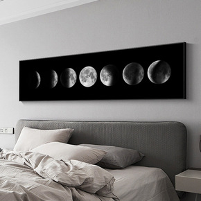 卧室装饰画黑白北欧横幅壁画月球卧室床头现代简约房间...
