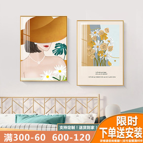 现代轻奢酒店床头叠加装饰画 抽象沙发背景墙挂画卧室...