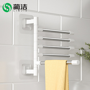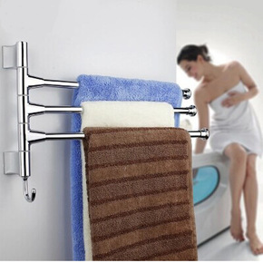 浴室不锈钢活动毛巾杆180度旋转多功能置物架多杆可...