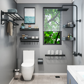 铁艺工业风浴室置物架壁挂一字毛巾架轻奢风卫生间挂钩...