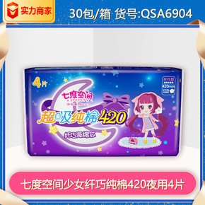 七度空间卫生巾女纤巧棉柔夜用420姨妈巾4片QSA...