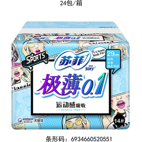 苏菲卫生巾弹力贴身极薄0.1夜用棉柔14片29cm...