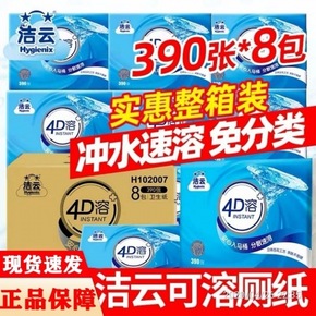 洁云平板卫生纸4d溶整箱8包390张厕纸家用抽纸实...