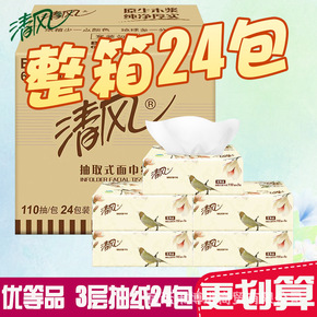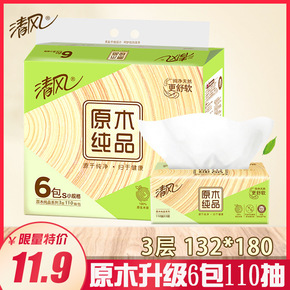 清风抽纸原木纯品纸巾家庭装婴儿面巾餐巾纸3层130...
