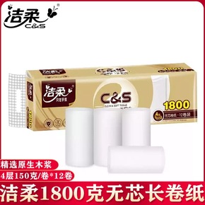 洁柔卷纸4层1800克家用无芯长卷纸手纸厕纸家庭装...