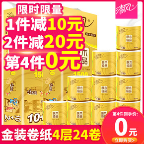 清风金装抽纸3层120抽10包一提原木纯品纸巾家用...