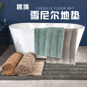 跨境货源粗细毛条子雪尼尔地垫吸水浴室防滑地垫欧式地...