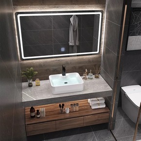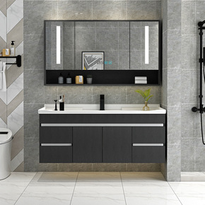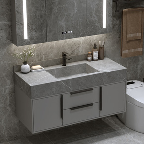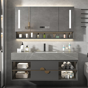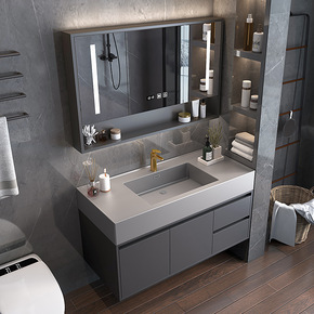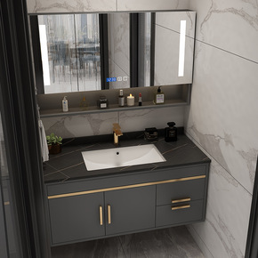 岩板一体盆浴室柜组合现代轻奢洗手洗脸盆柜智能卫生间...