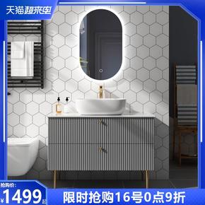 ins风灰色浴室柜洗脸盆组合卫生间大理石洗漱台落地...