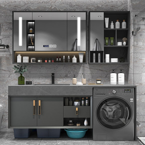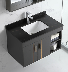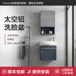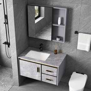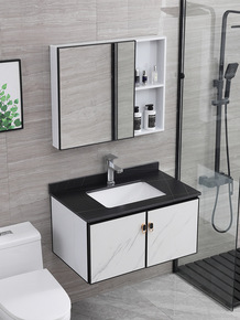 岩板太空铝洗漱台挂墙式洗手池洗脸盆柜组合简约太空铝...