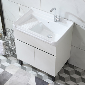 实木浴室洗衣柜北欧简约阳台柜洗衣池生态木免漆板卫生...