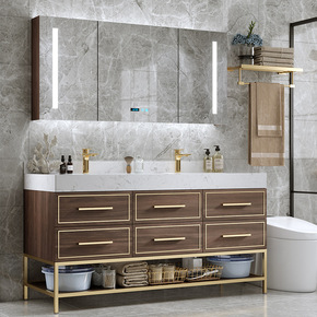 实木落地浴室柜组合现代智能镜柜卫生间洗脸洗手盆洗漱...