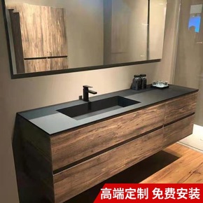 岩板一体盆简约卫生间套装原木柜子浴室柜组合洗手盆洗...