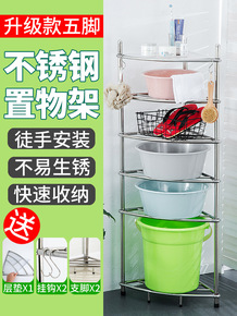 不锈钢脸盆收纳架子多层落地卫生间厕所三角置物架洗手...