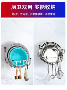脸盆挂钩厨房菜板无痕可挂式收纳架子家用卫生间免打孔...