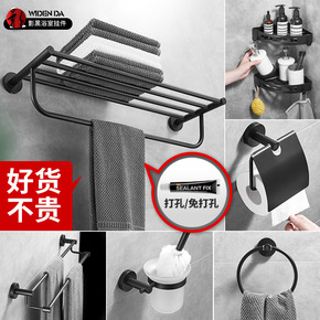 免打孔浴室毛巾置物架 轻奢卫生间卫浴五金挂件套装浴...