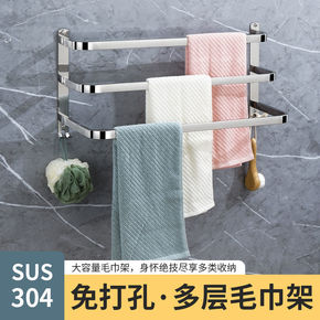 免打孔毛巾架卫生间置物架洗手间浴巾架不锈钢厕所浴室...