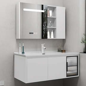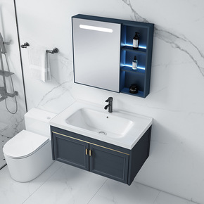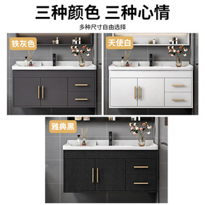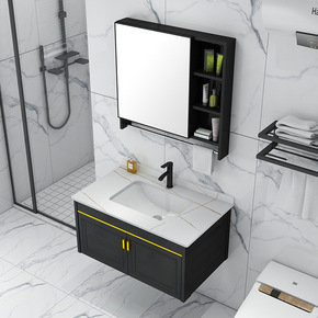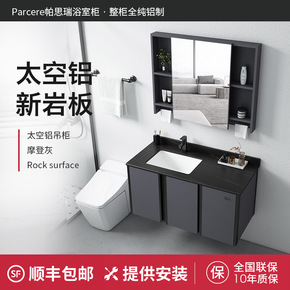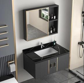 现代简约太空铝浴室柜组合卫浴套装岩板洗手盆洗脸盆卫...
