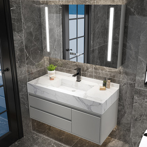 现代简约轻奢岩板一体浴室柜组合洗手洗脸面池卫生间洗...