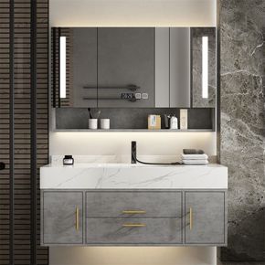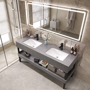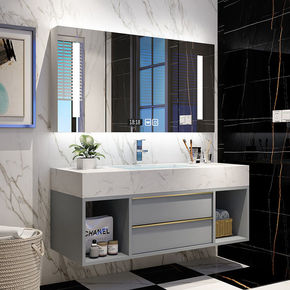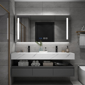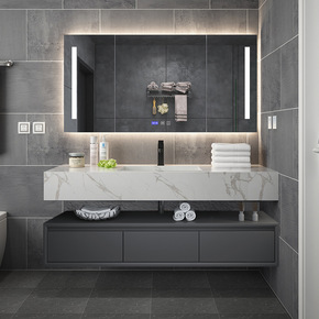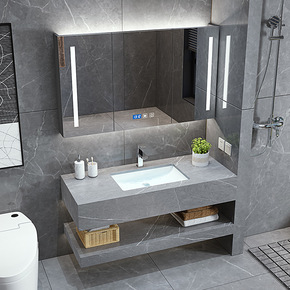 .深灰色智能岩板浴室柜组合卫浴套装轻奢卫生间洗手洗...