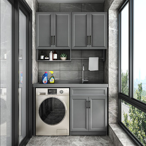 工厂直销阳台太空铝洗衣机柜组合洗衣台带搓板洗手洗脸...