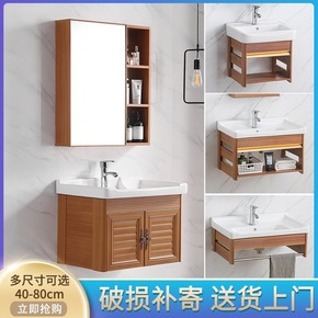 小户型实木浴室柜洗漱台盆组合镜柜洗手池洗脸盆卫生间...