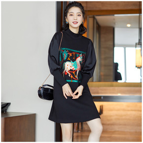 半高领卫衣裙女春秋薄款2022新款女子排球印花宽松...