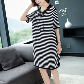 加肥加大码女装胖mm夏宽松遮肚卫衣连衣裙2021新...