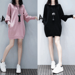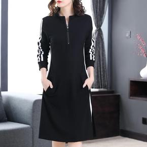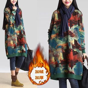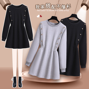 大码女装2021秋冬胖妹妹连衣裙中长款宽松加绒加厚...