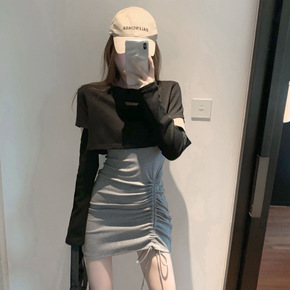 辣妹风小个子收腰显瘦气质打底内搭包臀卫衣连衣裙子女...