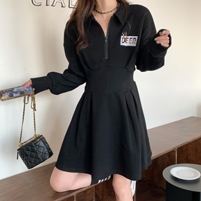 2022春季新款加厚赫本风连帽卫衣裙子收腰长袖时尚...