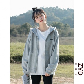 开衫卫衣女2022春季新款韩版宽松小个子连帽春秋薄...